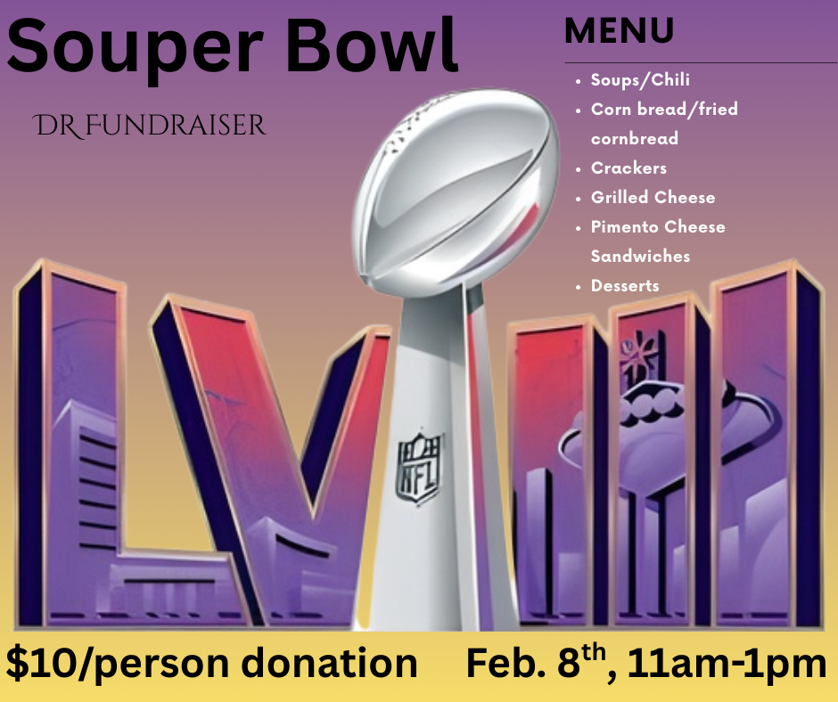Souper Bowl! Come support our DR mission team. They will be hosting a Souper Bowl, from 11am-1pm. Lots of delicious food and the opportunity to support the team as they get ready to share the gospel and love of Jesus to folks in the Dominican Republic! We will see you there.